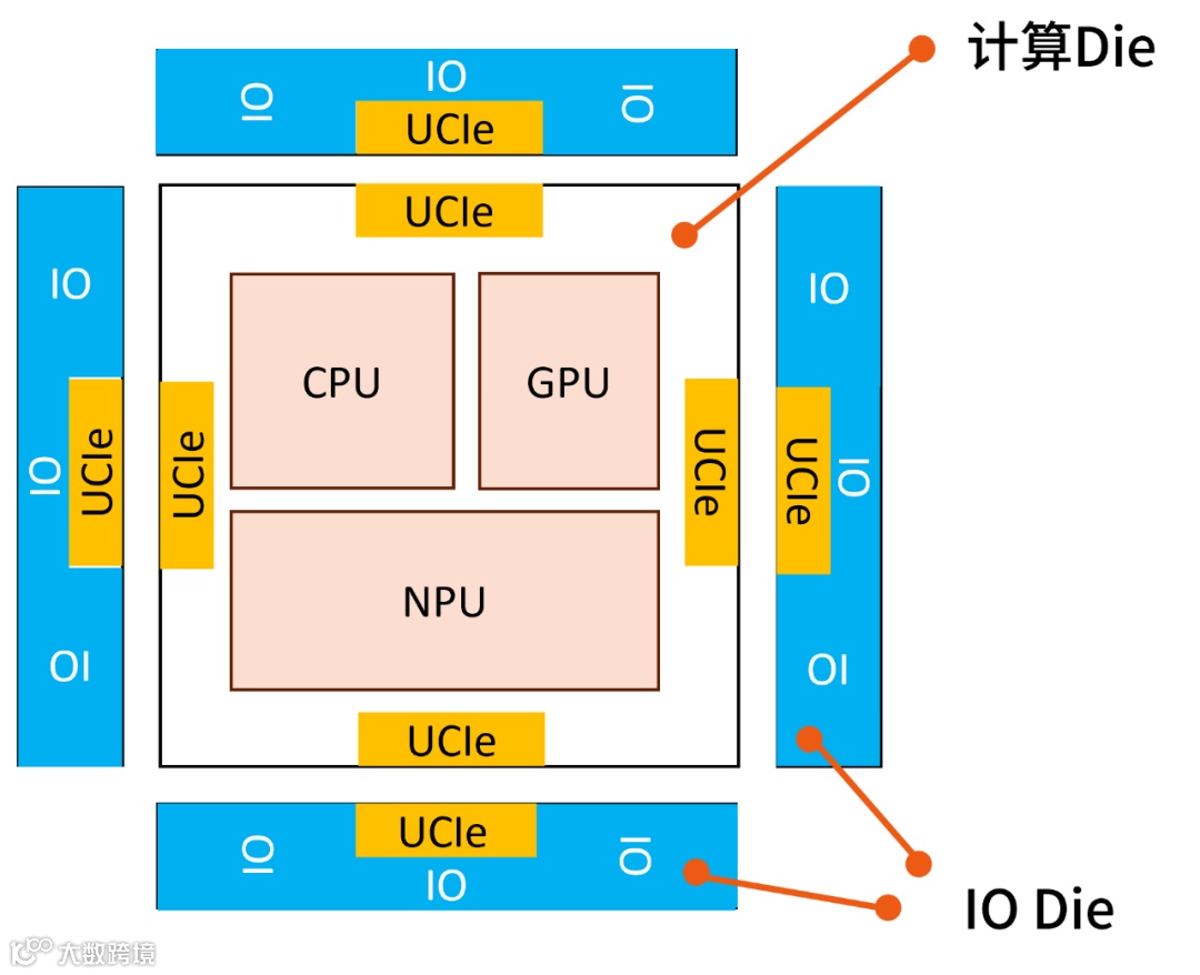 • 凹形布局可以最大化IO模块的面积,并通过UCIe跟计算Die进行互连;