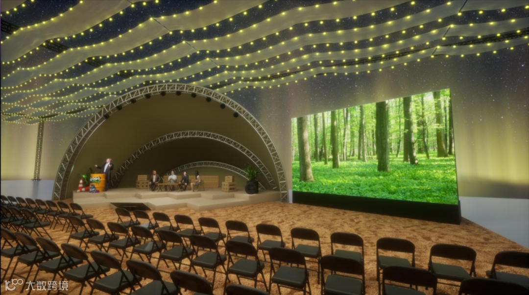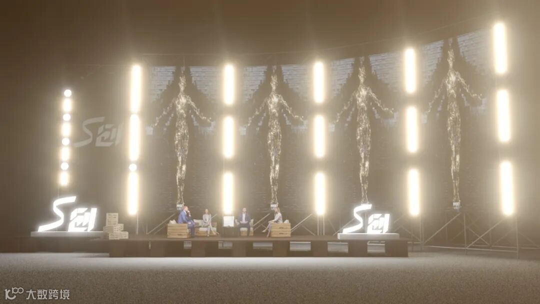 银河 舞台的整体色调,以80年代风格为主,用空心砖、铁丝网凸显复古气息,温暖的色调装饰现场,为参会者创造舒适的对话环境。