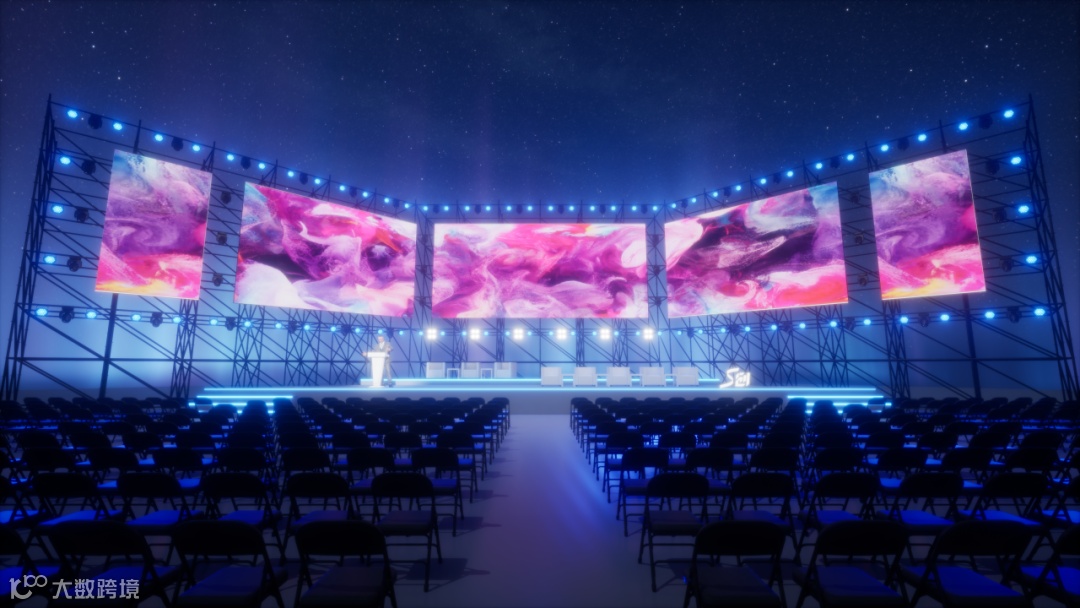 星域天蓝色为主体的“星域”舞台,不同区块的幕布光芒夺目闪耀,想要带给现场宁静悠然的气息。