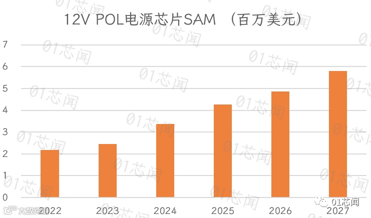 根据笔者从SpaceX获得的目标价格,大致估算出12V POL电源芯片的SAM,从中可以看到仅这个规格的芯片未来的年采购量就可能超过五百万欧元。此外,48V电源芯片的SAM也大约在同一量级,金额略小。