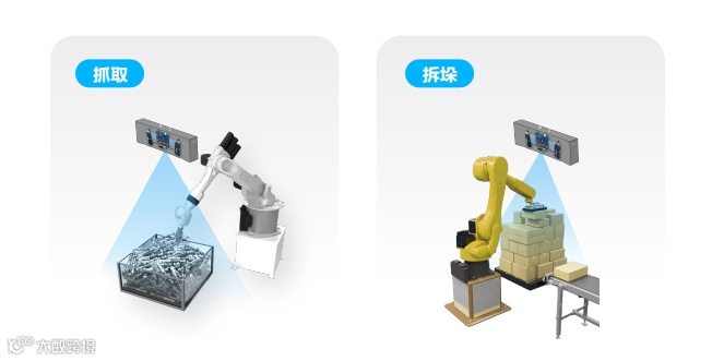 以PRO WR_200_5W为例,该款产品广泛适用于工业抓取、物流拆码垛等场景,同时拥有三大优势:第一,超大视野、超大景深,全球顶级FOV;第二,采用大功率激光光源,抗环境光干扰能力极强;第三,1200万像素彩色相机助力AI分割。