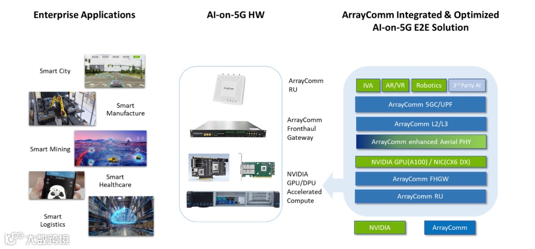作为 AI-on-5G 解决方案提供商, 爱瑞无线基于 NVIDIA A100 GPU、NVIDIA Aerial SDK 以及爱瑞无线的前传网关、射频单元和协议栈,打造了一个全新的面向行业应用的 5G+AI 边缘计算企业套件,大大降低了 5G 网络和 AI 部署、运维的门槛,从而加速行业的数字化转型升级。