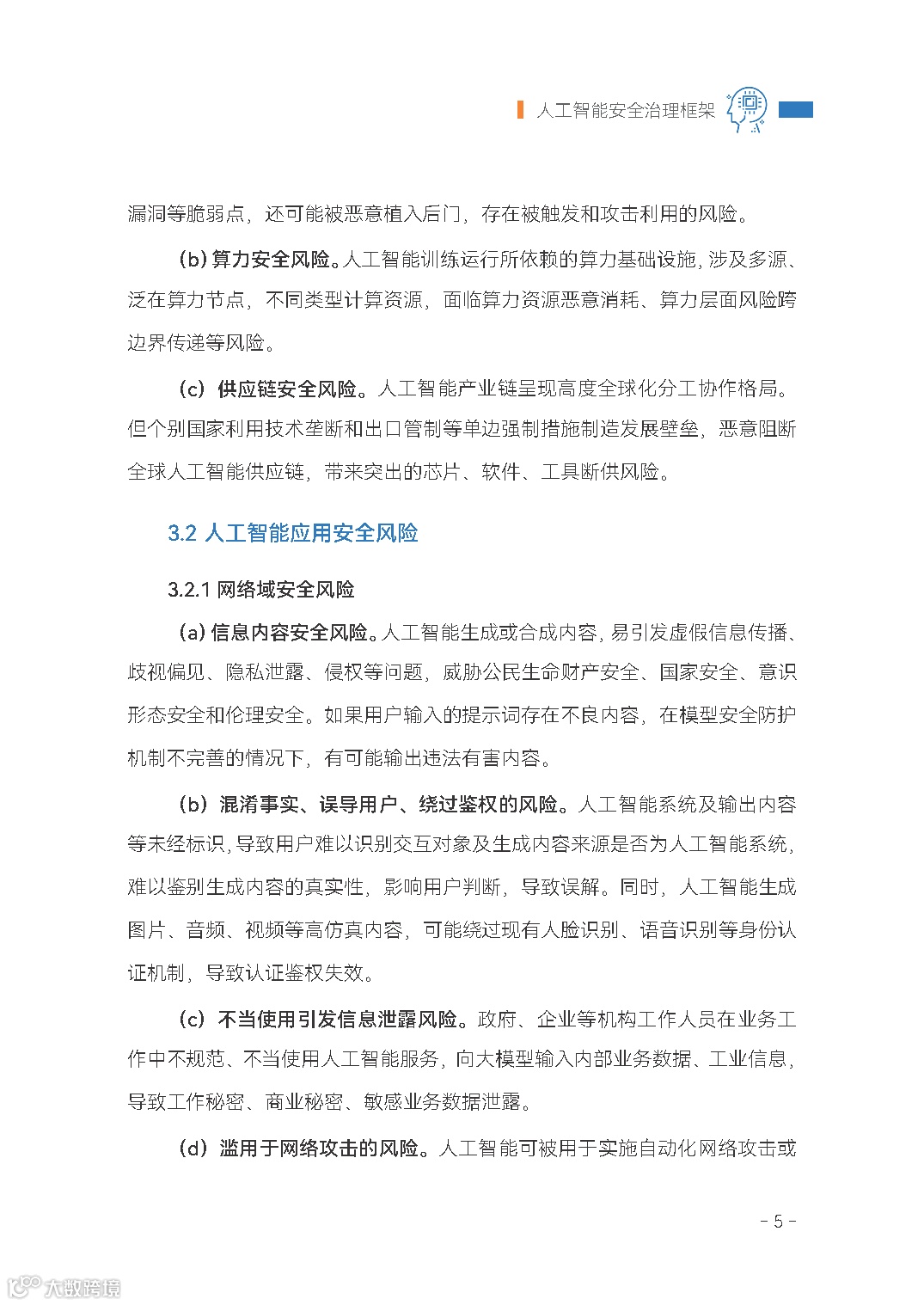据了解,为贯彻落实《全球人工智能治理倡议》,网安标委研究制定了《人工智能安全治理框架》(以下简称《框架》)。《框架》以鼓励人工智能创新发展为第一要务,以有效防范化解人工智能安全风险为出发点和落脚点,提出了包容审慎、确保安全,风险导向、敏捷治理,技管结合、协同应对,开放合作、共治共享等人工智能安全治理的原则。《框架》按照风险管理的理念,紧密结合人工智能技术特性,分析人工智能风险来源和表现形式,针对模型算法安全、数据安全和系统安全等内生安全风险和网络域、现实域、认知域、伦理域等应用安全风险,提出相应技术应对和综合防治措施,以及人工智能安全开发应用指引。