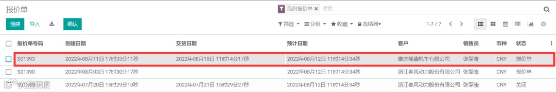 点击订单,选择报价单进入菜单,点击【创建】按钮,创建销售订单。