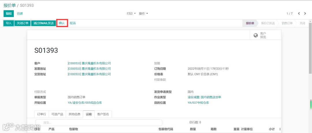 已确认的订单,无法编辑修改或删除,系统支持取消订单,然后重置为草稿,对已确认的订单再次进行编辑修改或删除。
