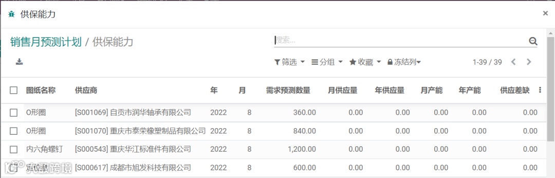 勾选一条销售月预测计划,点击【计算供保能力】按钮