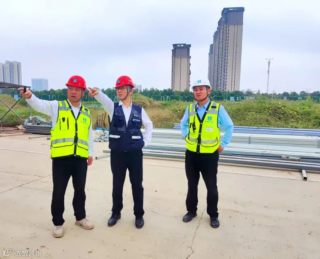 10月3日上午,蔡玉龙深入江汉平原产业交流中心项目,实地察看项目钢结构施工、屋面围护安装等关键环节,详细了解工程进度、技术重难点及国庆期间施工组织安排,并对下一步工作提出三点要求: