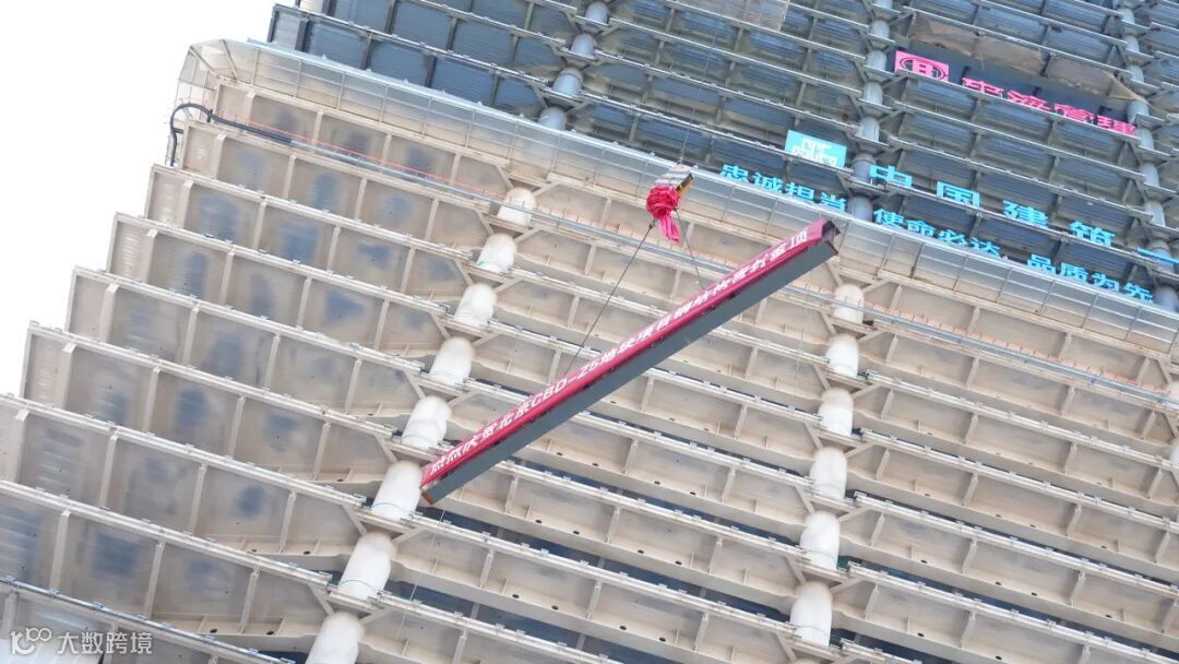 技术创新是项目高效推进的核心动力。建设过程中,项目团队通过优化设计与工艺,显著提升施工效率:与设计单位协同对多段封边梁进行整合优化,同步实施幕墙埋件优化及定制标准幕墙埋件孔洞封堵件等措施,有效减少安装吊次、降低施工难度,最终实现外框钢结构主体提前封顶。