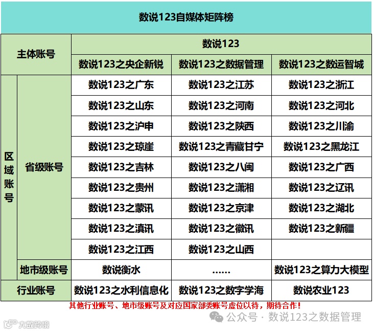 数说123之数据管理是北京数说政通科技有限公司旗下自媒体矩阵“数说123”子账号,面向国家、省、市、县四级数据管理部门,聚焦政策热点、项目动态,依托自媒体、数据、情报、资源,为客户提供媒体宣传与账号运营、行业对标、洞察分析,助力数据管理事业发展,洞察数据行业趋势,链接数据产业价值。