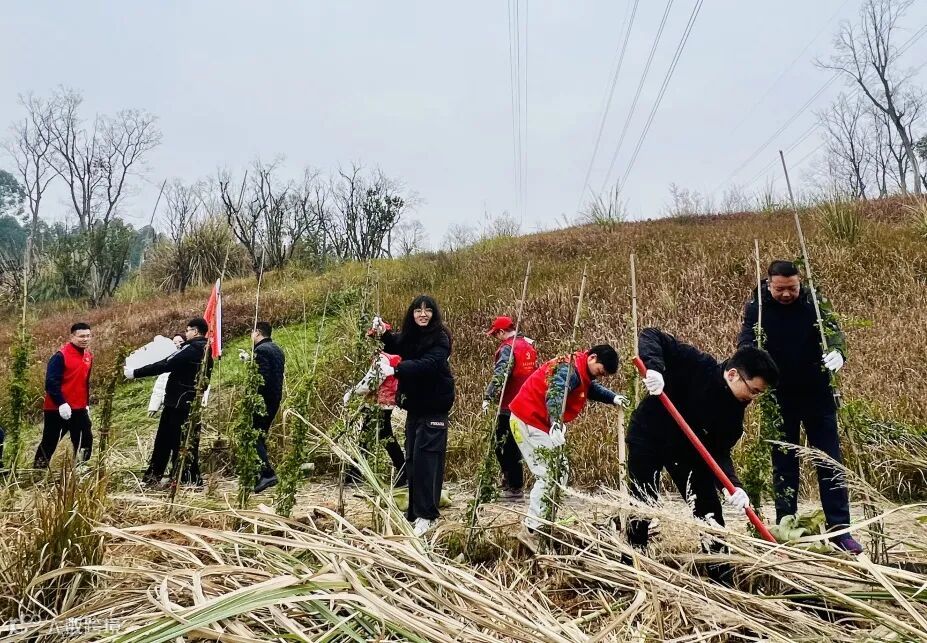 中海成都天府新区超高层项目联合项目参建各方及天府新区凉风顶社区,开展了“党旗引领添新绿·先锋示范护青山”植树节主题活动。活动现场呈现出一派火热朝天、忙碌有序的劳动景象,二百余株蔷薇树苗向阳而生,为初春的土地孕育了一片勃勃生机。