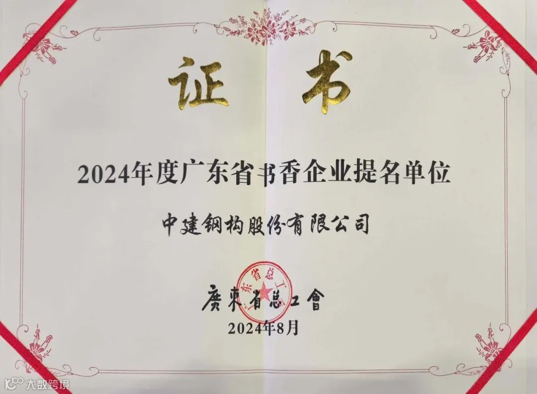 公司获得深圳市十大书香企业,中建钢构天津有限公司获中华全国总工会职工书屋授牌,建起了职工书屋、书香阅读点、蓝领工人学习角等阵地12个,总占地面积445平方米,提供书刊16162册,配备相关专兼职管理人员14人。大力打造钢构人的阅读媒体矩阵,助员工畅读畅学。