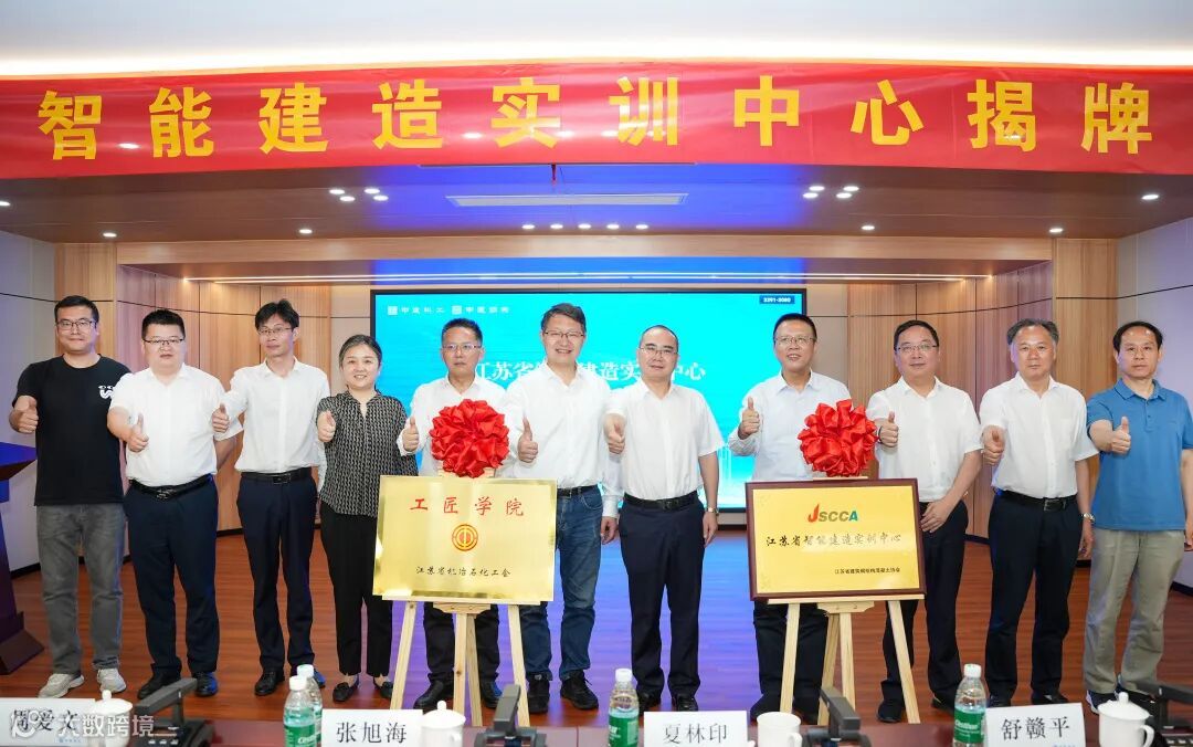 6月15日,江苏省智能建造实训中心揭牌仪式在中建钢构(华东)举行。江苏省机冶石化工会主任张旭海,二级调研员李春艳,三级调研员、机冶建材工作部部长许宝林,东南大学教授舒赣平,江苏省建筑钢结构混凝土协会常务副秘书长秦国新,副秘书长高原,中建钢构党委副书记、总经理夏林印,党委副书记、纪委书记、工会主席周爱文,中建钢构(华东)党委书记、董事长方振亚等参加仪式。
