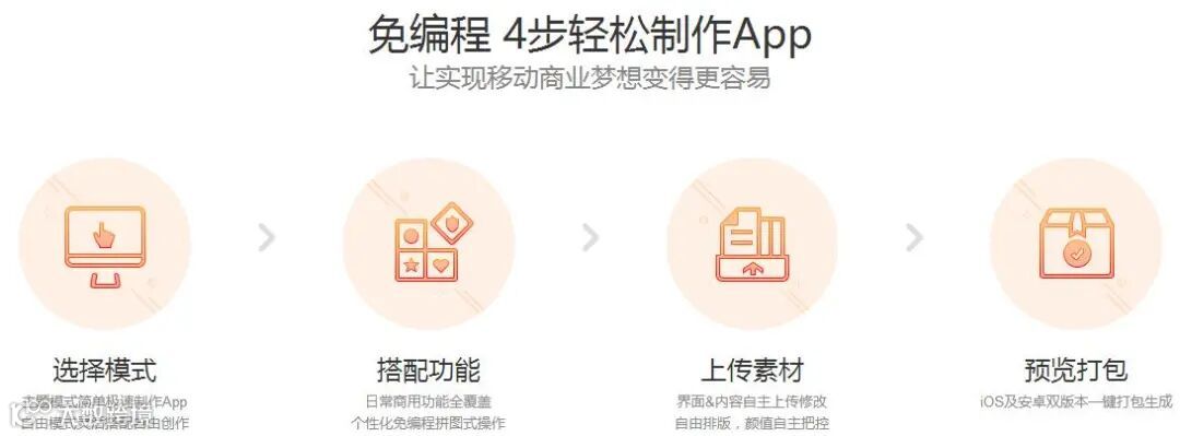 具体的内容就是,功能的挑选、功能的排布、图片文字的填充,全程不需要编程。