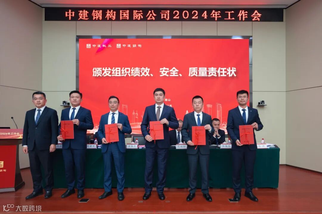 会议还对中建钢构国际公司实体化方案进行了解读,对两家经理部、五家营销经理部授牌,颁发了组织绩效、安全、质量责任状与2024年重点投标项目责任状,进行了2023年度先进集体和个人表彰。
