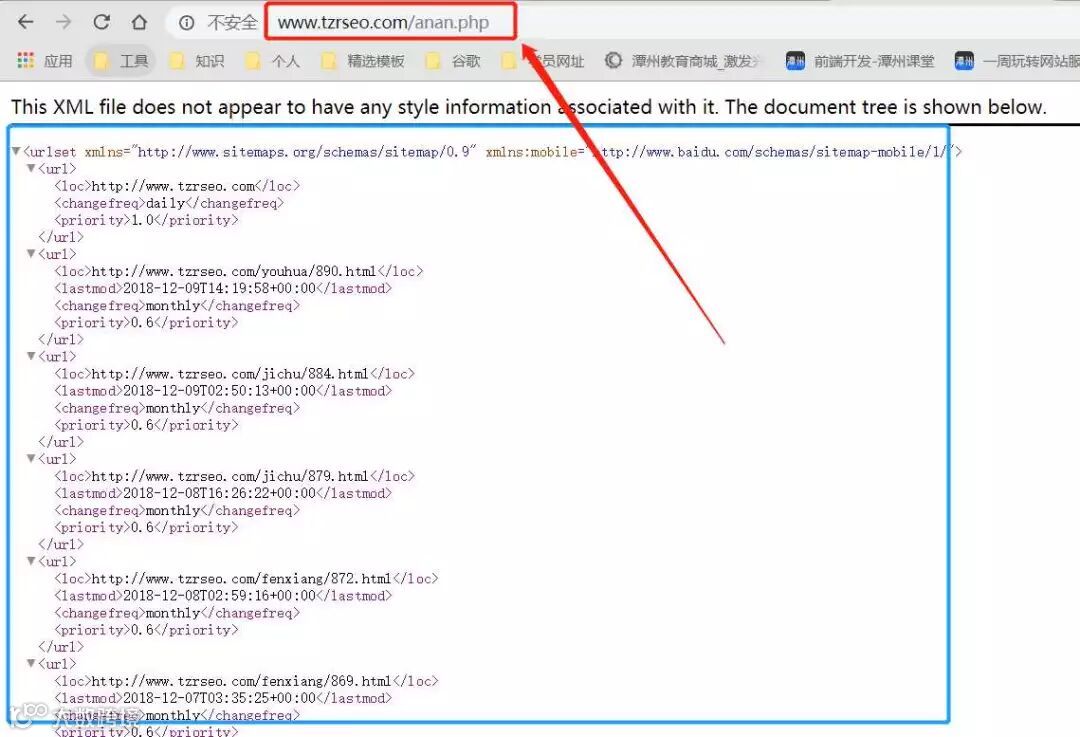 第三种就是阿南最近找到的一个神器,它是一个php文件来的,这个文件需要上传至站点根目录下,然后通过浏览器访问域名/anan.php,你就会发现它会变成站点的网站地图。这个时候我们就可以将当前网站地图内容内容复制下来,在本地创建一个文本粘贴保存更名为sitemap.xml直接上传根目录就可以去提交了。