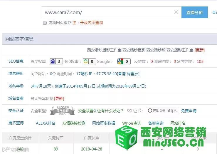 中小企业网络营销推广怎么做?当前,对于大多数的中小企业来说,都面临着一个共同的问题是推广难做,让企业很头疼。只有把网络推广问题解决了,80%面临破产的中小企业就有活下来的希望。可见,解决了网络推广问题,企业才能够成长壮大起来,才能盈利更多的利润。中小企业的底子薄、资金少,所以在做网络推广时,不仅仅要考虑网络推广的效果,还要考虑网络推广的成本,如何在最低成本的情况下达到最优的推广效果,才是中小企业在制定推广策略时最要重视的问题。今天我所分析的西安SEO优化案例的就是如何让推广效果持续性的策略百度权重0短时间到3。西安高级网络营销师如何75天将中小型企业网站百度权重从0到3(西安摄影工作室)。