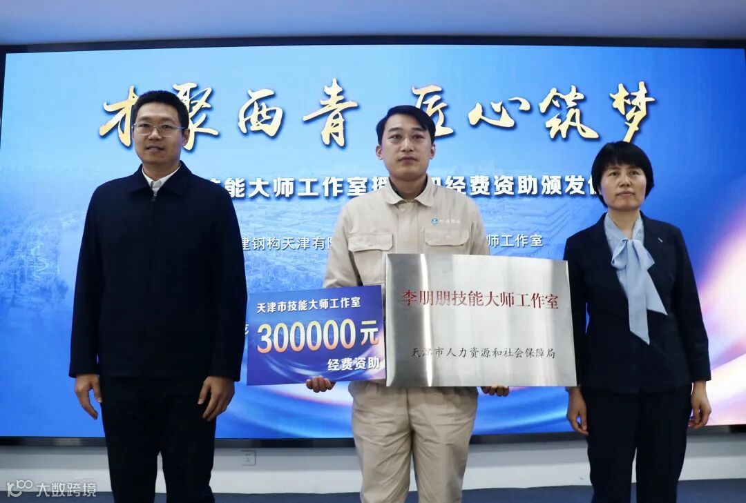 启动仪式上,中建钢构(北方)李朋朋技能大师工作室作为西青区首个市级技能大师工作室获颁经费资助和授牌;中建钢构(北方)陈旭获颁2022年“天津市技术能手”证书和奖励资助。