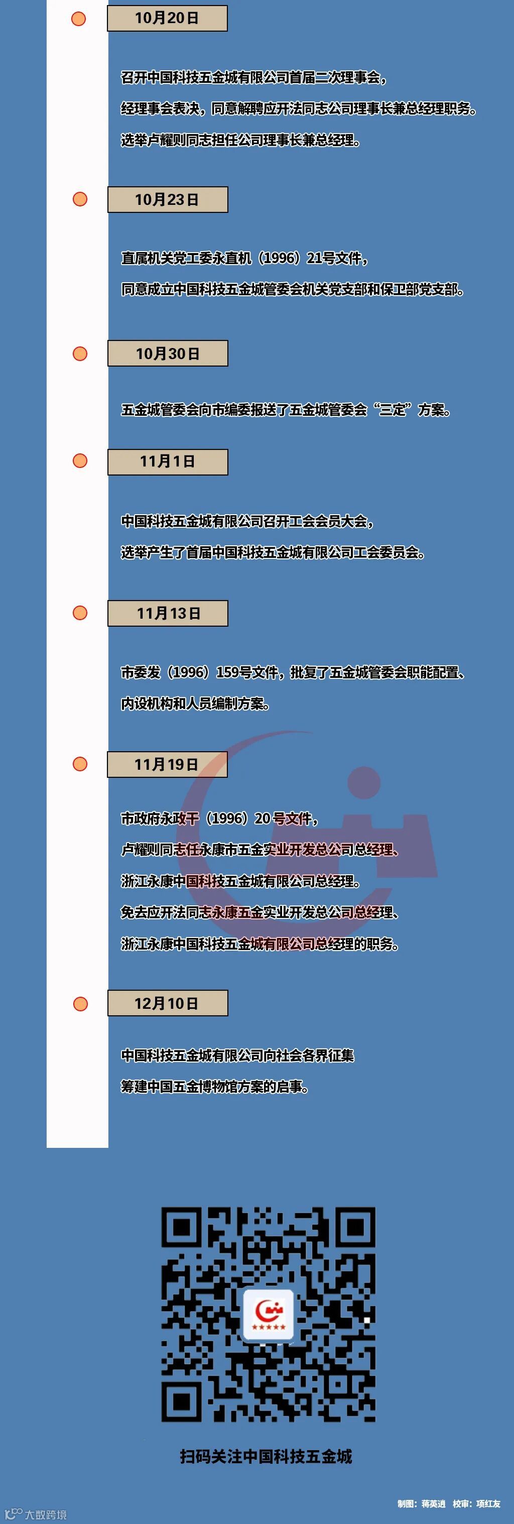 不忘来时路,走好前行路。为深化党史教育与企业发展史传承相结合,全面回顾中国科技五金城建设发展史,深刻了解中国科技五金城集团在上级党委的坚强领导下,敢为人先、奋勇开拓、勇立潮头,推动中国科技五金城从无到有、从小到大发展历程,传承中国科技五金城精神,奏响五金合声,凝聚推进企业改革发展新征程的强大力量,特编写“中国科技五金城成立30周年大事记”,每周发布一期,欢迎小伙伴们关注。