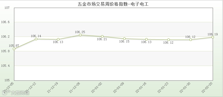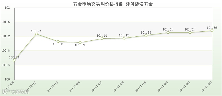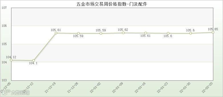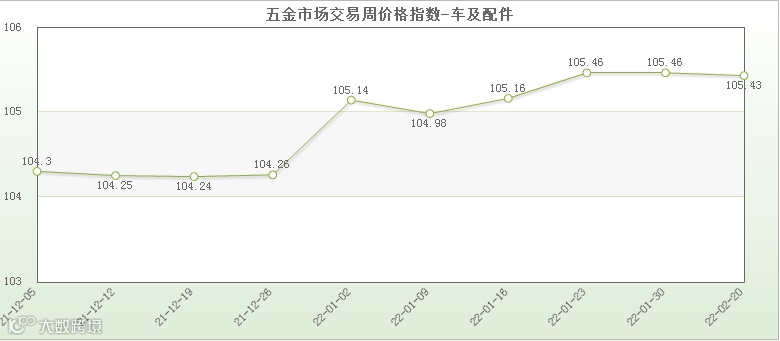 据监测,“中国·永康五金指数”五金市场交易周价格总指数上周(2022年2月14日至2022年2月20日)收于104.53点,较前一周微幅上升0.01个百分点。