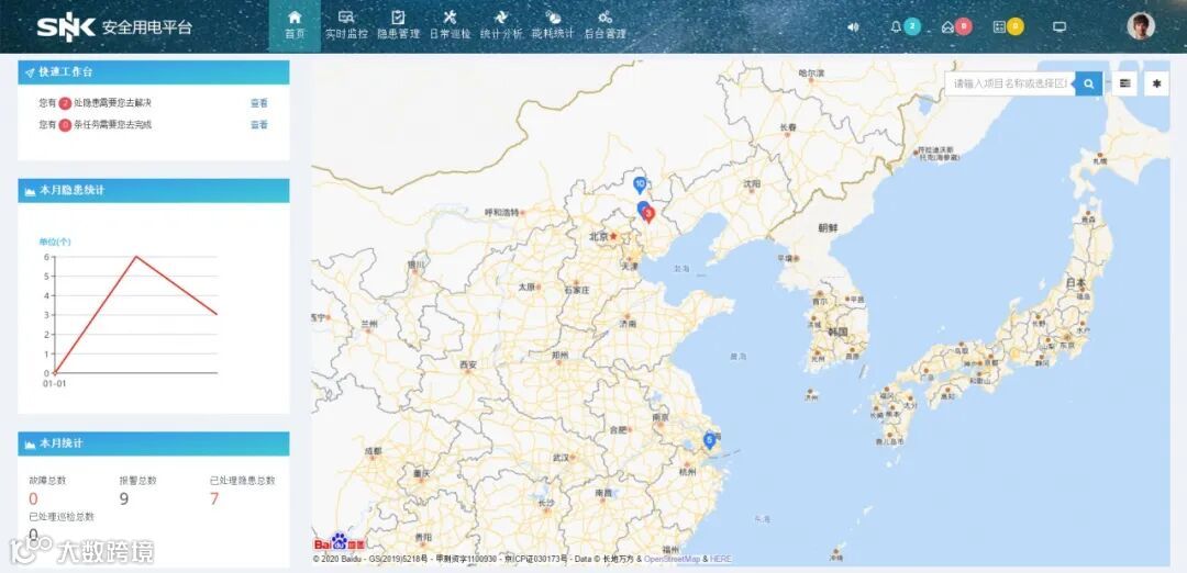 SNK Cloud安全用电云管理系统能够对剩余电流、设备温度、故障电弧等电气故障进行实时监控、报警、记录,并且通过云端进行远程控制。另一方面,云平台提供超大容量的信息储存及稳定的服务,提升了服务质量,对用户的长远发展具有战略意义。此外,该系统通过集中监控,使得数据通过每个节点的4G网络传输至云端集中式管理和监控,主控端布置于城市消防大队,从而能够对采集的信息进行统一的监控和管理。