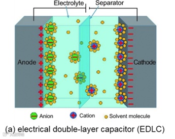 电极表面或体相中的二维或准二维空间上,电活性物质进行欠电位沉积,发生高度可逆的化学吸附/脱附或氧化还原反应,由于赝电容可在整个电极内部产生,因此可获得比双电层电容更高的能量密度,但因充放电循环稳定性有限以及电解液问题等因素而难以商用。
