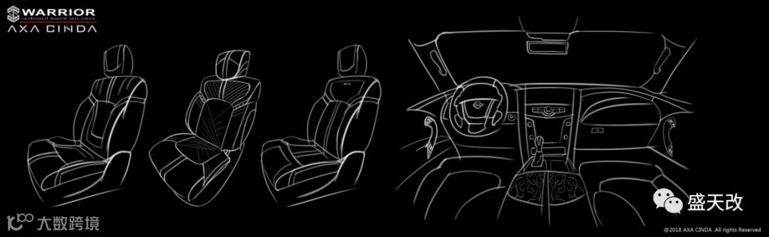 在座椅的设计上,DWDREAM团队借鉴了传统服装的开襟的设计,使座椅的分割布线,如同将士盔甲里的内衬,精简干练,霸气威武。