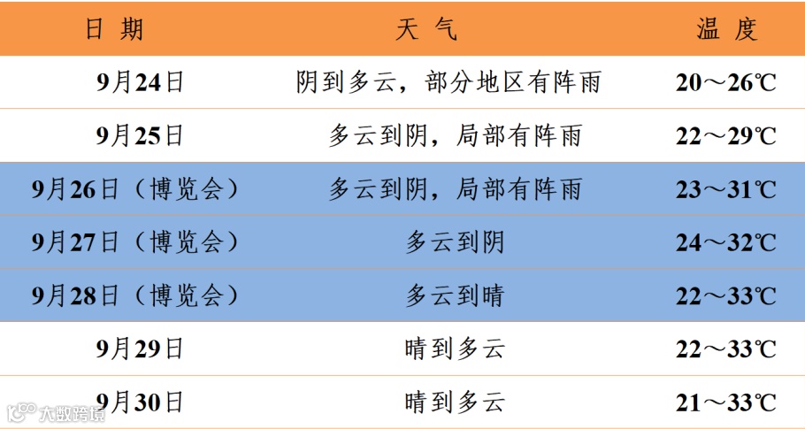 9月28日(周六):多云到晴,温度22℃~33℃