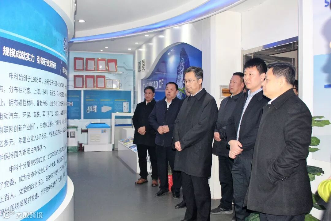 唐书记一行在王力崇董事长的陪同下,参观了申科展室。董事长向唐书记介绍了集团概况和进军环保、汽车、高铁、军工等行业的发展定位以及助推建设“辛集物联网创新产业园”的战略构想。唐书记对申科集团取得的发展成绩给予了充分肯定,对其全方位、多领域的发展战略表示赞许。