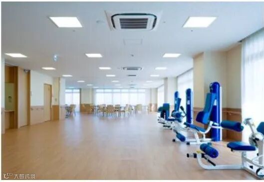 机构于 2007 年 4 月投入运营,位于东京大田区,毗邻羽田国际机场,占地 8220 平米,总使用面积 1633 平米,是一家无论从建筑规模还是设施内部配置都很“高大上”的复合型养老机构。机构常住老人可达 320 名,日间往返照护可达 65 名。以往参观的日本养老机构一般都是小巧精致,3-5 层左右的大楼。当这座10 层高的建筑群赫然屹立在面前时,强烈的好奇心带我急于进入一探究竟。进入大厅首先是换鞋,此程序是进入每个机构的必要程序,以此保持清洁,尽可能减少细菌的带入。边换鞋边打量四周,借鉴美式大街的开阔、明亮风格而建的开放式大厅,暖色调装饰及暖光有效隔离了室外的阴冷,两侧的沙发颜色明快,仿佛进入的不是养老机构而是一家五星度假酒店。