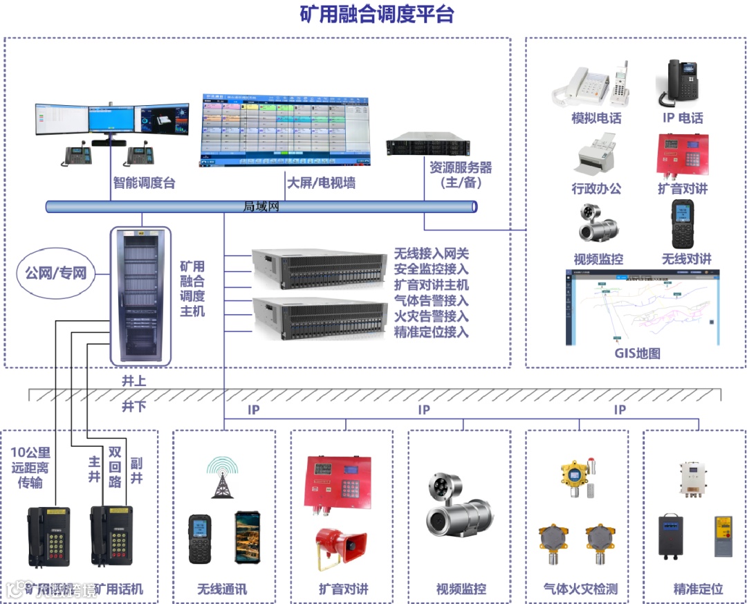 上海申讯的 KT727矿用融合调度通讯平台立足于解决工业通信当下多系统、分散部署、信息数据不能互通的弊端。融合调度通讯平台集成行政电话、调度电话、无线对讲、短信平台、视频监控、扩音广播、气体告警应急联动等功能模块,各信息化子系统功能模块可分步部署,实现智慧工厂融合通信系统的数字化、一体化。