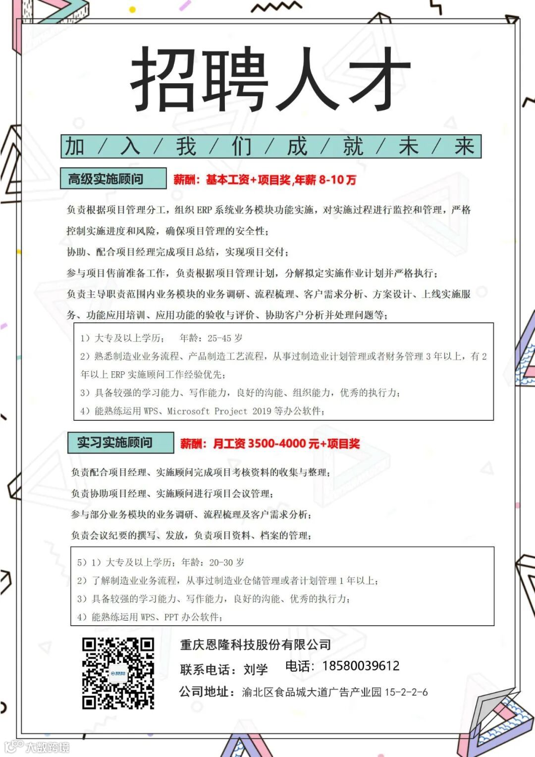熟悉制造业业务流程、产品制造工艺流程,从事过制造业计划管理或者财务管理3年以上;有2年以上ERP实施顾问工作经验优先;