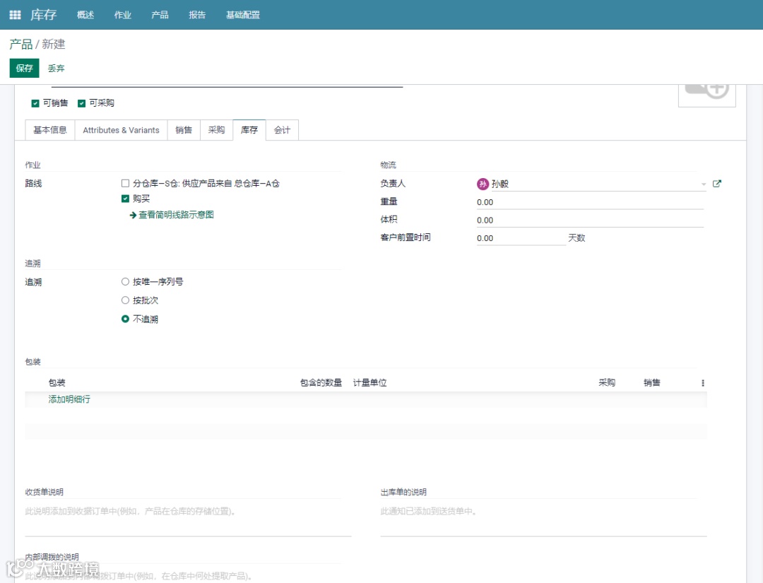 路线:这将使您可以根据安装的模块来定义产品的路线,这有助于确定是否将根据订单等购买,制造或补充产品。