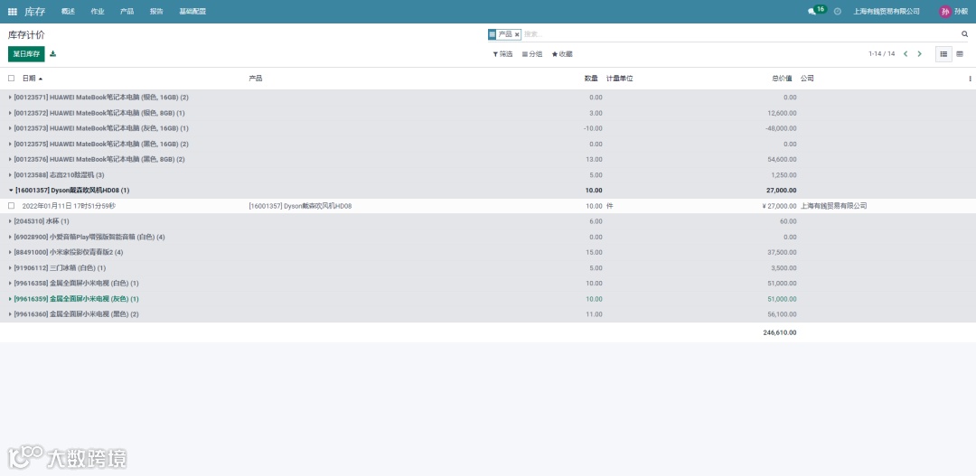 查询某日库存数量、价值,明细到各个库位,可随时检查某些关键产品的实际库存,准确的产品盘存有助于降低所需的安全库存以及相关管理费用