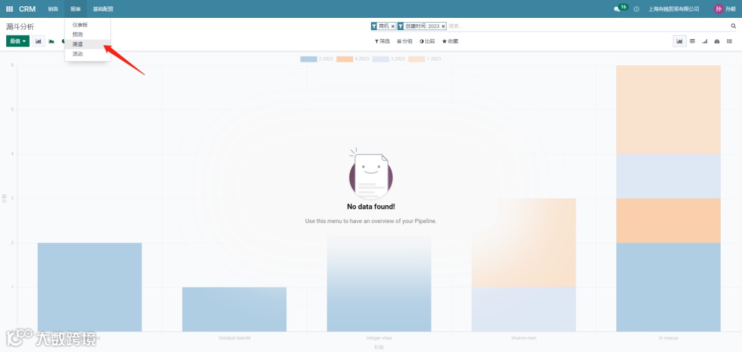 点击报表菜单栏里的渠道,可以进行查看商机报表
