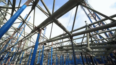 ▲南段钢屋盖完成首次提升