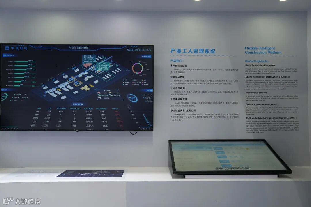 步入“建造更智能——做中国建造的引领者”展区,由中建科工旗下中建钢构智能制造研究院自主研发的钢结构工业化产线、产业工人管理系统映入眼帘。钢结构工业化产线中包含14款自研机器人,已形成无人下料、组焊矫一体等3项成套新工艺,可提升产线工效约22%、降低工厂能耗约10%。产线展板下方,圆管焊接机器人、便携式焊接机器人和激光除锈机器人三款自研机器人正挥舞着“手臂”自动进行焊接、除锈,让参观者沉浸式感受智能设备带来的建筑工业化变革。不远处,打通多平台数据、可准确形成工人职业档案的产业工人管理系统正进行着面板演示,展现新时代工人全流程周期可视化的管理方案。