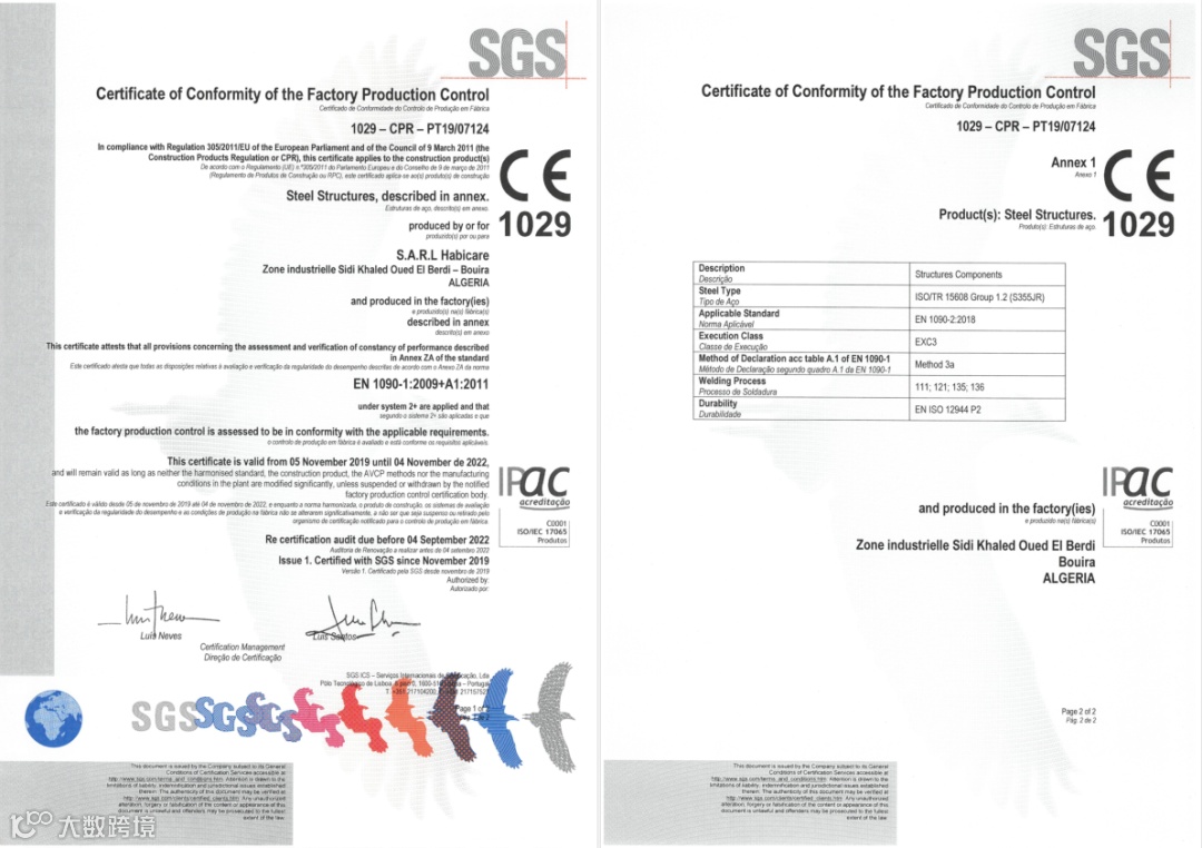 阿尔及利亚钢结构制作厂三合一体系认证、欧标认证