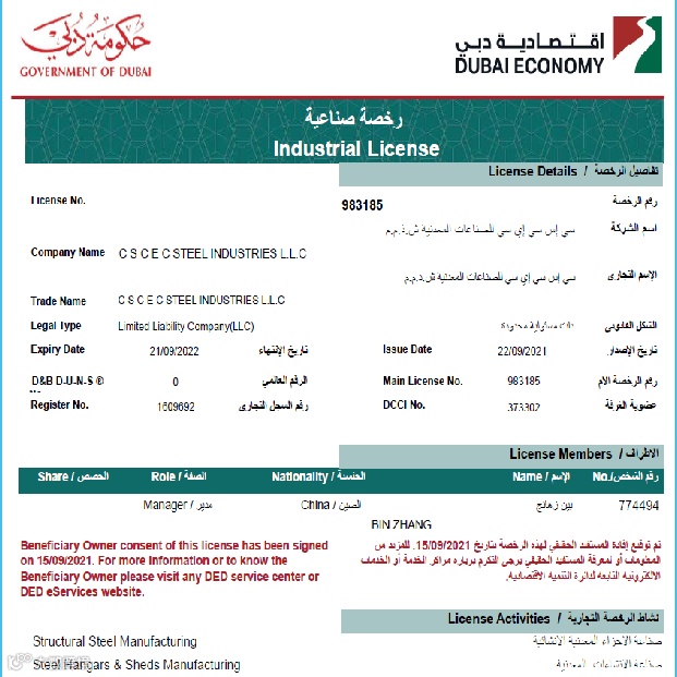 迪拜制造厂位于迪拜Jebel Ali工业区,周围配套设施完善,占地面积1.5万平方米,拥有办公区、生产车间、露天堆场及其他附属设施,设计年产能1.2万吨,是中东地区唯一一家中资钢结构制造厂。