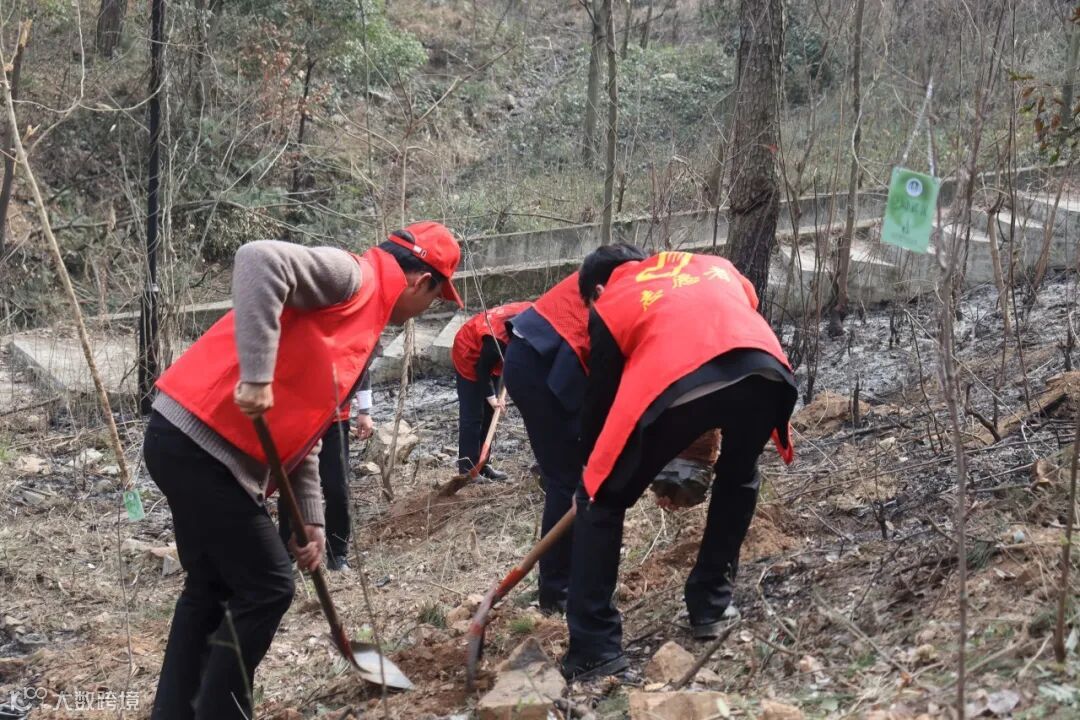 志愿者们满怀热情,手持铁锹,挖坑、埋树、培土,有序地投入到植树工作中,成功种下100棵小树苗。植树结束后还立起“绿美青年林”的牌子,它不仅是对大家辛勤劳动的见证,更是对未来绿色乡村的美好期许。此次党建带团建的植树活动,不仅增强了大家的环保意识,也为乡村发展增添了一抹绿色。