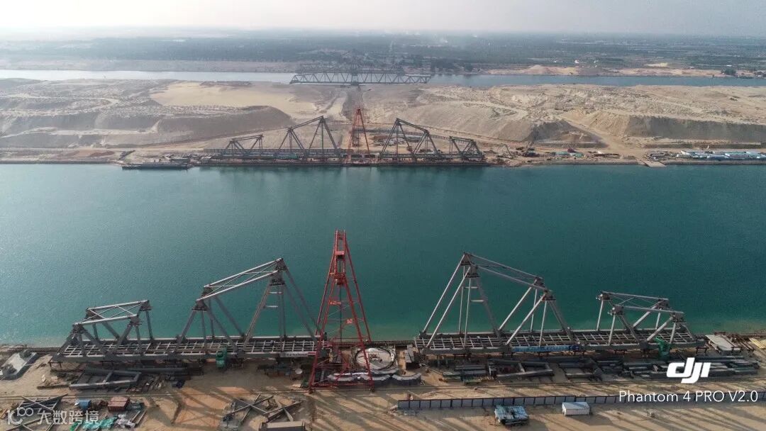 ▲埃及苏伊士运河平旋铁路大桥新桥(近)+旧桥(远)