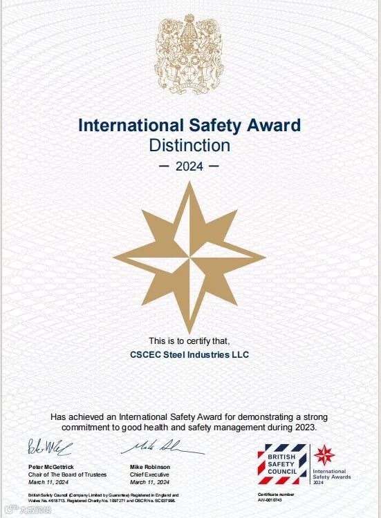 ISA(全称:International Safety Award)国际安全奖是国际健康与安全方面最具权威性和影响力的荣誉之一,由英国安全委员会负责评选,旨在表彰、激励世界各地对在职业健康安全、福利方面做出贡献的组织。英国安全委员会于1957年成立,总部位于英国伦敦,在国际上享有极高的声誉,成员遍及60多个国家,致力分享、促进和推广全球最新、最佳安全实践经验。该奖分为卓越奖(Distinction)、优异奖(Merit)、胜出奖(Pass)三个等级。