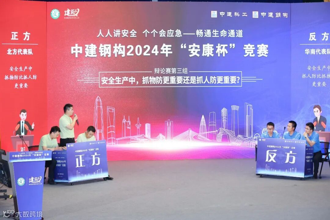 此次“安康杯”竞赛还组织了一场充满激情的“安全辩论赛”,由华中代表队与钢构国际代表队、北方代表队与华南代表队、华东代表队与西部代表队两两分组,就安全生产中“安全工作能不能人性化”“抓风险预防和隐患治理哪个更有效”“抓物防和人防哪个更重要”进行辩论pk。辩论过程中,双方辩手引经据典、旁征博引,就各自的立场展开有理有据的阐述,引得场下掌声阵阵。
