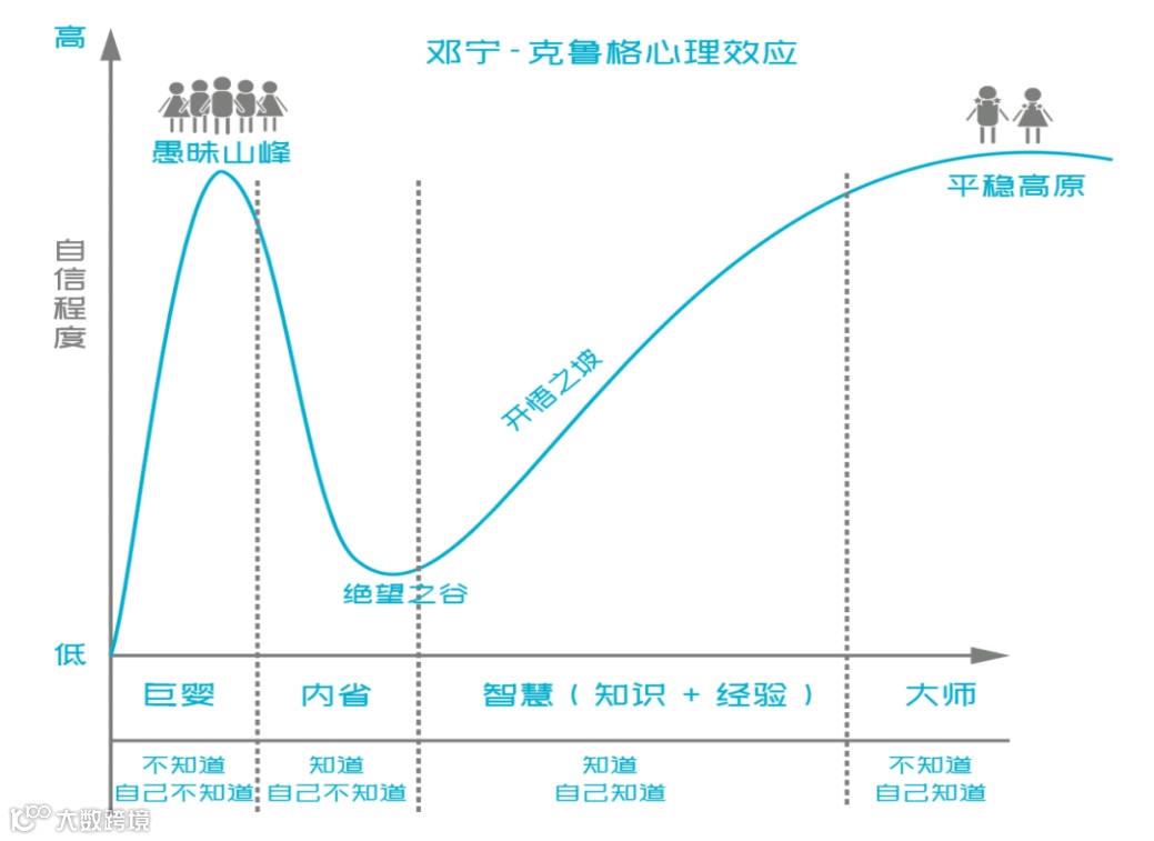 这张图描述的是邓宁-克鲁格心理效应,也称为“达克效应”。