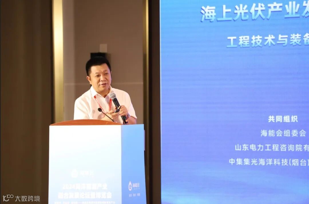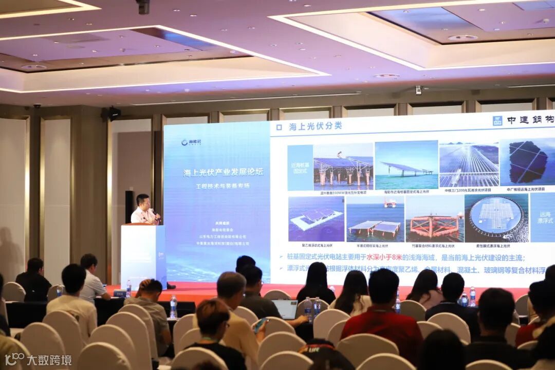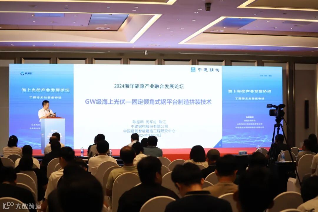 展会期间,中建钢构总工程师陈振明在会上作GW级海上光伏——固定倾角式钢平台制造拼装技术交流。