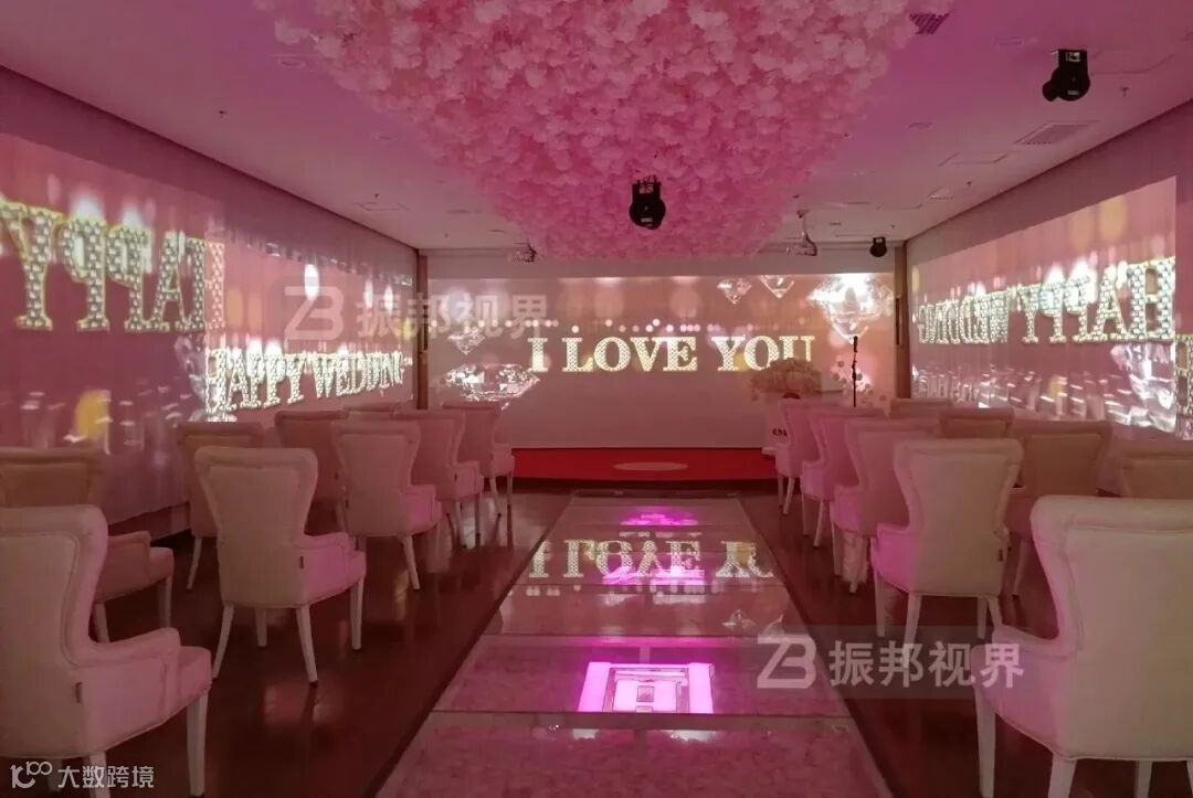 在场景设计上,包括中式、西式和中西合璧三种主题风格。中式喜庆庄严,"凤冠霞帔、红墙朱瓦"的中式场景,大红灯笼高挂,礼花绽放,寓意龙凤呈祥,百年好合!