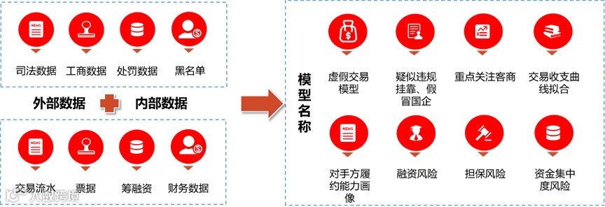 系统贯通财务、资金、合同、发票、仓单、工商、司法、行业黑名单等企业内外部数据,打造“内外部数据生态圈”,有效赋能模型分析。数字化赋能管理,实现对风险事项的高效识别、提前预警、合理处置和客观评价。