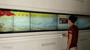 滑轨长度根据屏幕尺寸定制,控制识别系统反应灵敏,实现了和传统触摸屏不一样的互动展示形式。