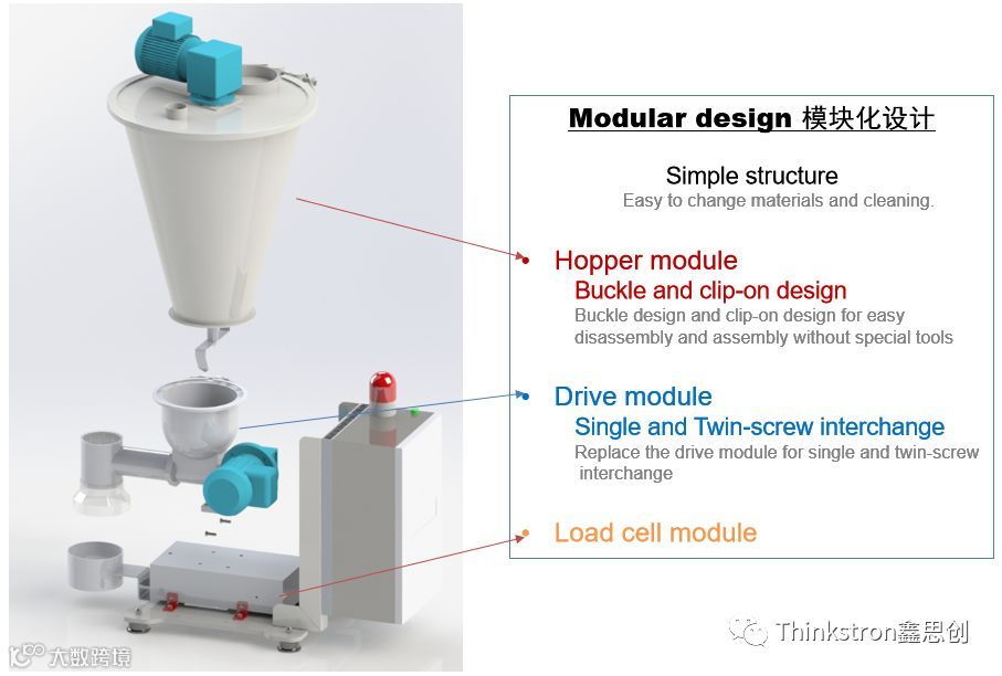 鑫思创设计的失重式计量秤,正是以其这种模块化的设计,使得拆卸都变得简便,让操作和清洁更加迅捷简单。