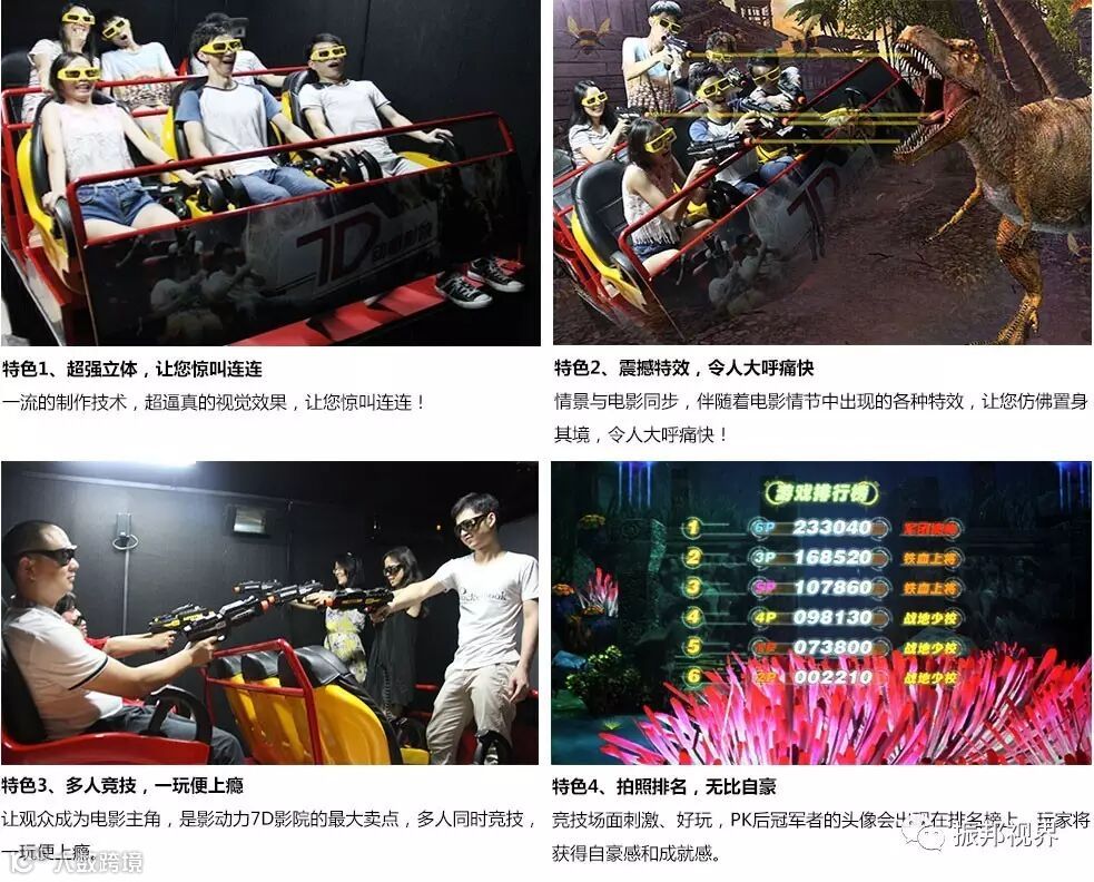 7D互动影院适合在游乐园、公园、旅游景点、大型旅游度假村、商业中心、游戏厅、闹市、步行街等多种场所经营。 振邦视界希望通过与各地投资商精诚合作,共同把握机会,将7D互动电影设备快速向全国推广,让亿万观众获快乐的同时,也为各地带来丰厚的回报。