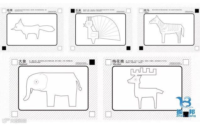 在魔法森林(白天版)里小朋友可以对以下小动物进行涂鸦,狐狸、梅花鹿、斑马、孔雀、大象。